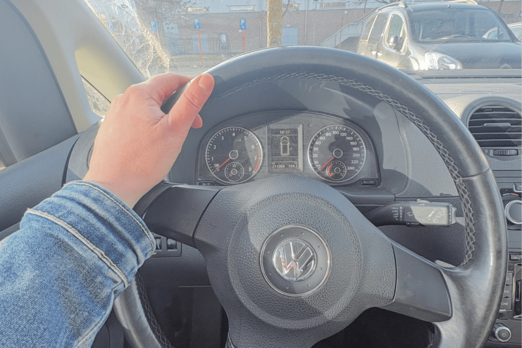 Mijn hand aan het stuur.
