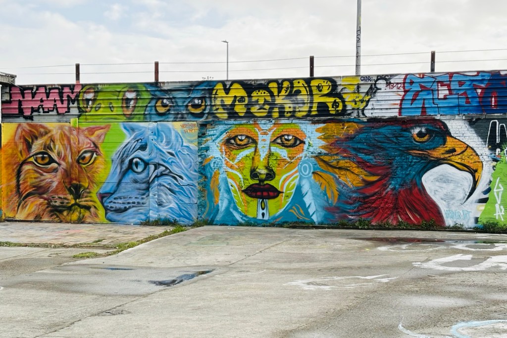 omringd door muren vol kleur.